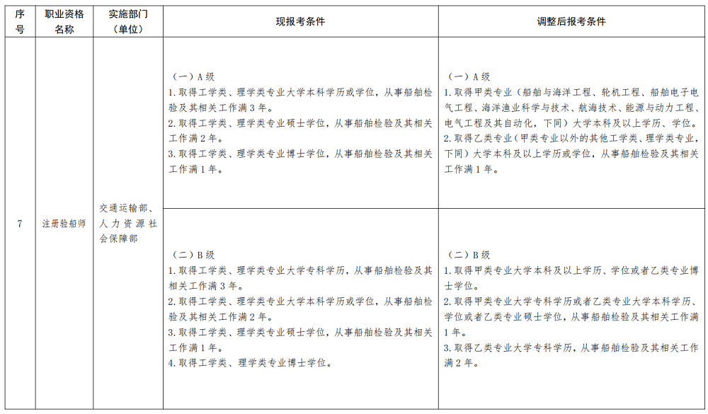 一、《部分准入类职业资格考试工作年限要求调整方案》(见附件)自2022年起实施。除调整考试工作年限要求外,13项准入类职业资格的其他考试报名条件不变。