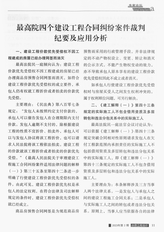 ******院四个建设工程合同纠纷案件裁判纪要及应用分析