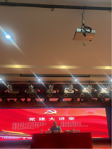 本次来自全省住建系统所属9家协会所属的各企业负责人、党员及积极分子100多人参加了党建大讲堂。课堂上通过金棕老师的精彩宣讲及金棕老师的切身体会分享(金棕:安徽省委讲师团宣讲专家、安徽省爱国拥军促进会副会长、安徽省个体民营企业协会副会长、安徽省社会组织总会副监事长、安徽金水坊文化产业园党总支书记、安徽三环科技集团董事长),使在会人员深刻认识到没有共产党就没有新中国,没有共产党就没有改革开放的今天,没有党员们的鲜血热撒疆土就没有今天的安居乐业!也深深明白了“什么是共产党员”、“什么是信仰”,要坚决树立伟大无私的中国共产党带领我们走向新征程的决心。******阐述了党组织的建立对民营企业的起着至关重要作用。