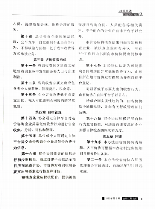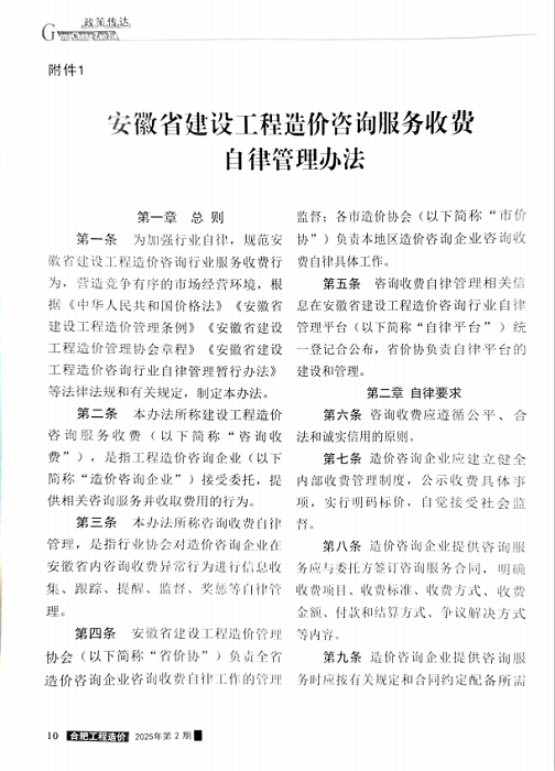 安徽省建设工程造价咨询服务收费自律管理办法
