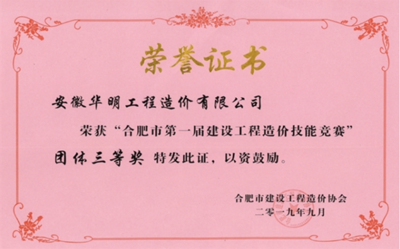 2019年技能竞赛-团体三等奖证书