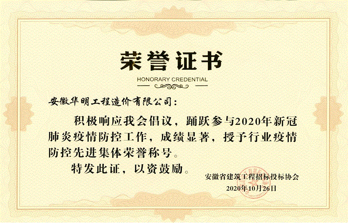 2020年行业疫情防控先进集体称号