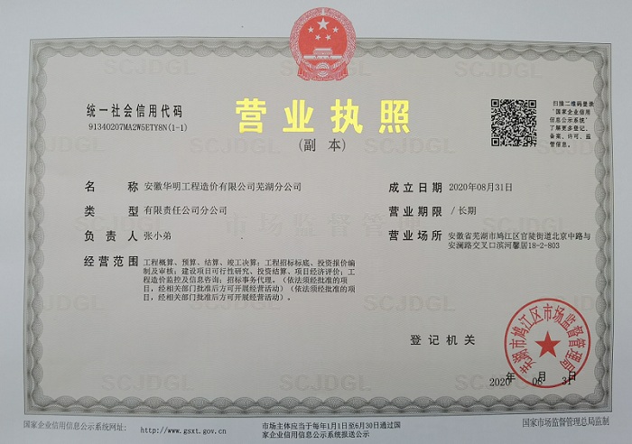 芜湖分公司营业执照