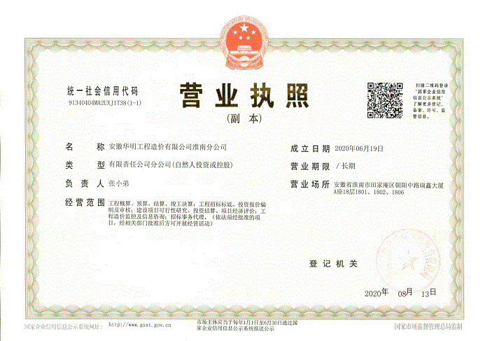 淮南分公司营业执照