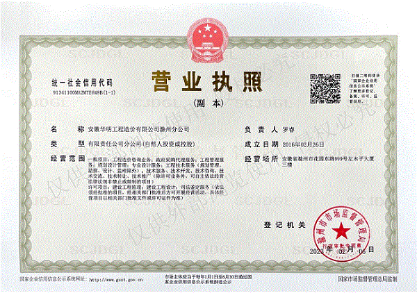 滁州分公司营业执照